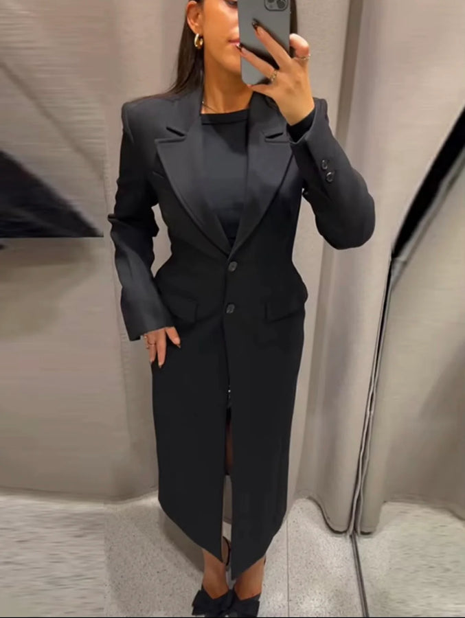 Refresh your wardrobe with this chic blazer coat that combines style and functionality. Featuring a tailored fit, sharp lapels, and an elegant single-breasted design, it is perfect for any occasion, from work to casual outings. Available in a range of versatile colors, it is ideal for adding a touch of refined elegance to your everyday look.